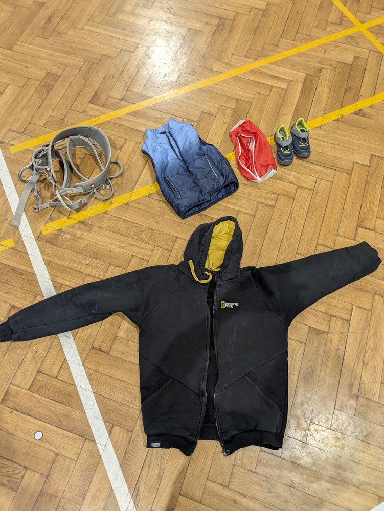 Věci, které zůstali po závodech na stěně.