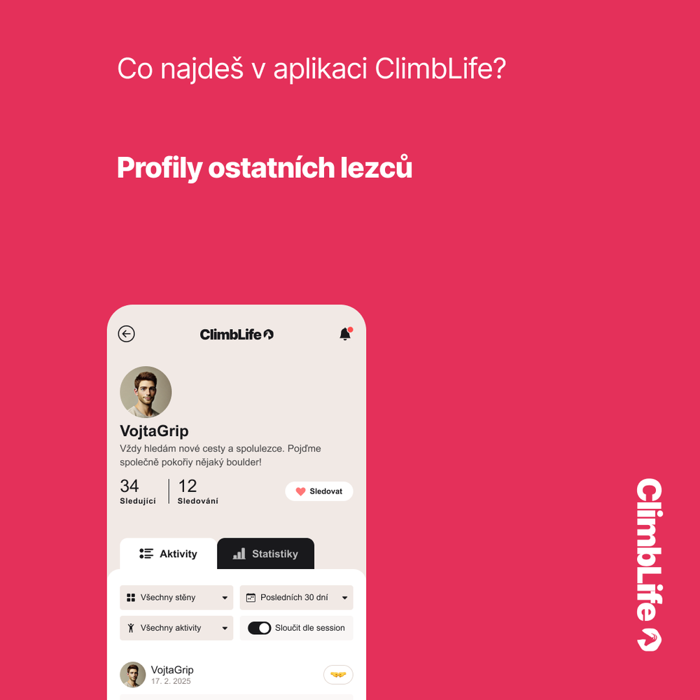 Stahuj, lez, zapisuj, hodnoť, sdílej pokrok, sleduj ostatní
